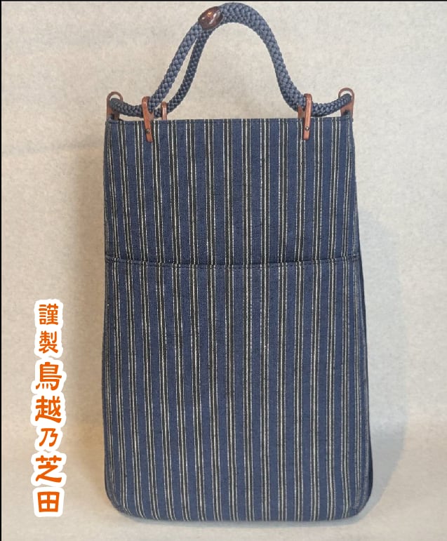 【紐手提 唐桟 紺黒白】特選生地 古布 ビンテージ布